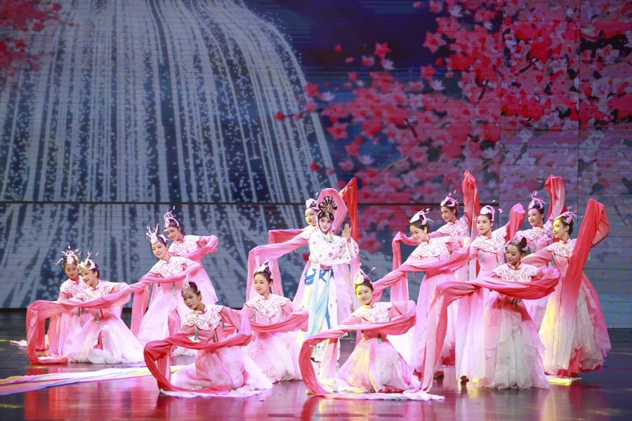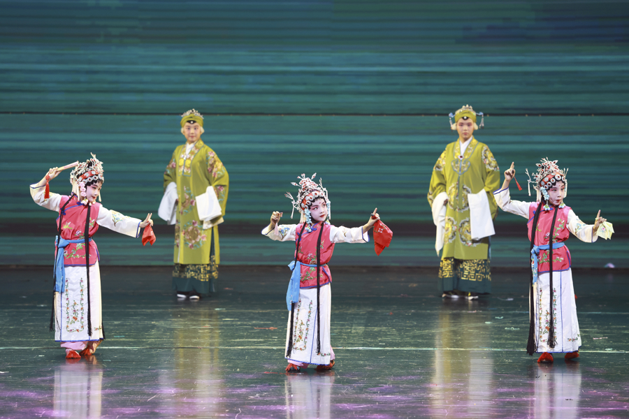 超凡国际随后,四幕大戏串联起梅兰芳先生的艺术人生与泰州的文化记忆:第一幕“海上绽梅·艺海弄潮”,以情景歌舞《繁花》、京剧选段《天女散花》《霸王别姬》等,还原梅兰芳先生早年闯荡上海的艺术探索,展现泰州文脉的开放胸怀;第二幕“蓄须明志·艺通寰宇”,通过跨界演绎与情景表演,呈现梅兰芳先生与卓别林跨时空的对话及“蓄须拒演”壮举,凸显其家国情怀;第三幕“百梅归泰·根植三水”,回顾1956年梅兰芳先生返乡演出的“万人空巷”,泰州5家戏剧院团悉数登场,地方戏联唱《三水芳菲》精彩演绎了板桥道情《老渔翁》选段、淮剧《观灯》选段、锡剧《打金枝》选段,展现了地域文化的独特魅力;第四幕“挂帅领航·守正创新”,一群朝气蓬勃的小演员以稚嫩却清亮的唱腔、一丝不苟的身段,演绎京剧《梅骨新蕊》,赢得阵阵掌声。尾声“千秋咏梅·泰聚芳华”,当经典京剧《穆桂英挂帅》中《捧印》选段的旋律响起,瞬间唤醒全场对梅派艺术的深层共鸣;随后,恢宏的大合唱《梨花颂》里,梅兰芳先生的AI语音悄然融入,跨越时空的声线与现场歌声交织。最后,激昂的《歌唱祖国》旋律点燃全场热情,所有观众自发起身,用嘹亮的歌声为这场融汇艺术传承与家国情怀的演出,画上圆满的句号。